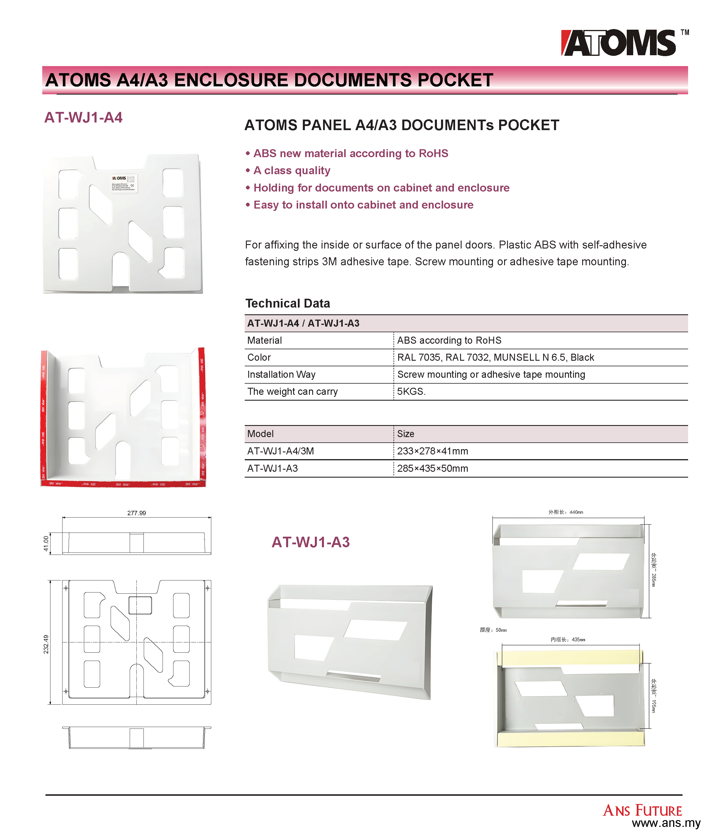 ATOMS A4 Enclosure Document Pocket (WJ1-A4/3M)