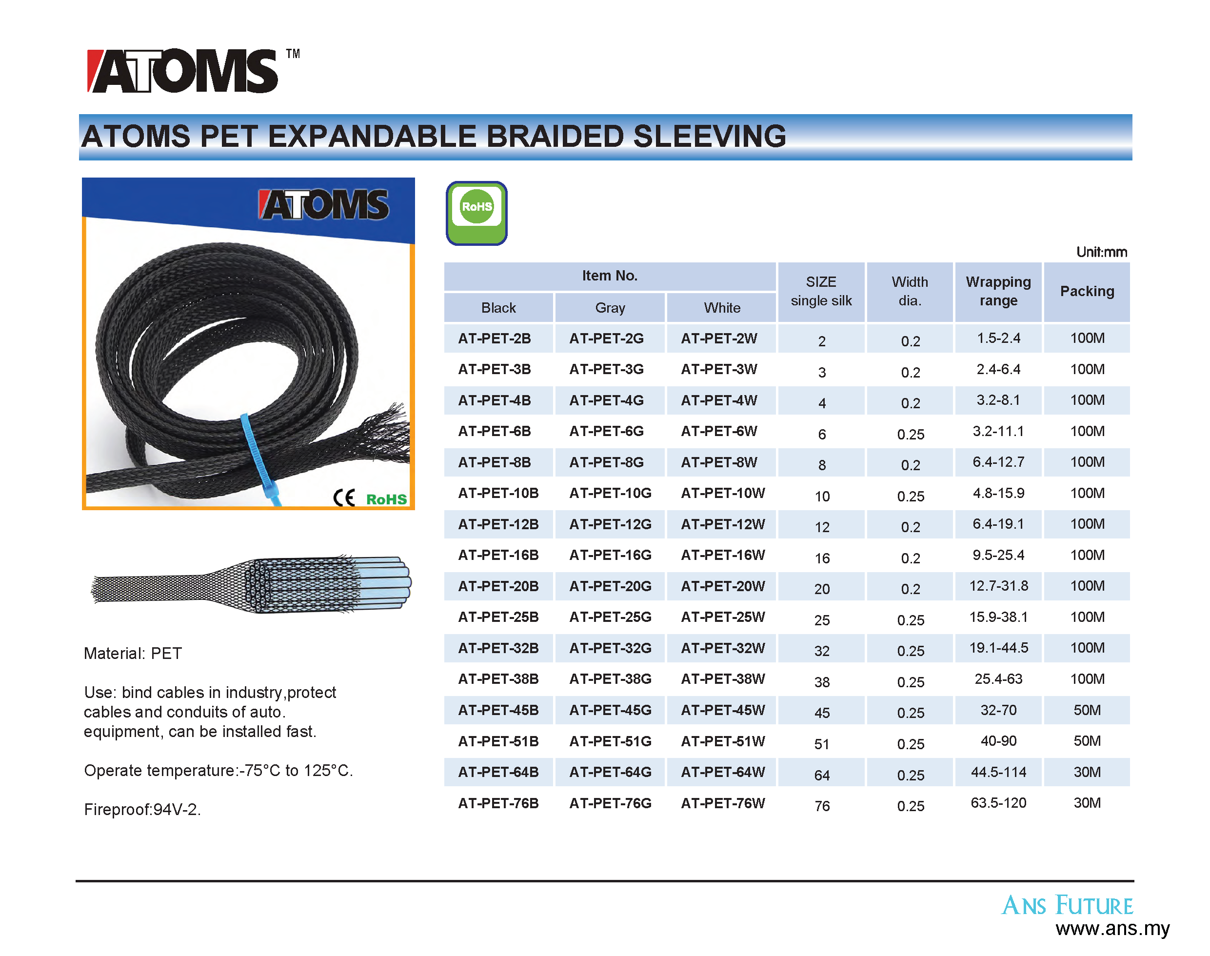 ATOMS Expandable Braided Sleeving (PET)