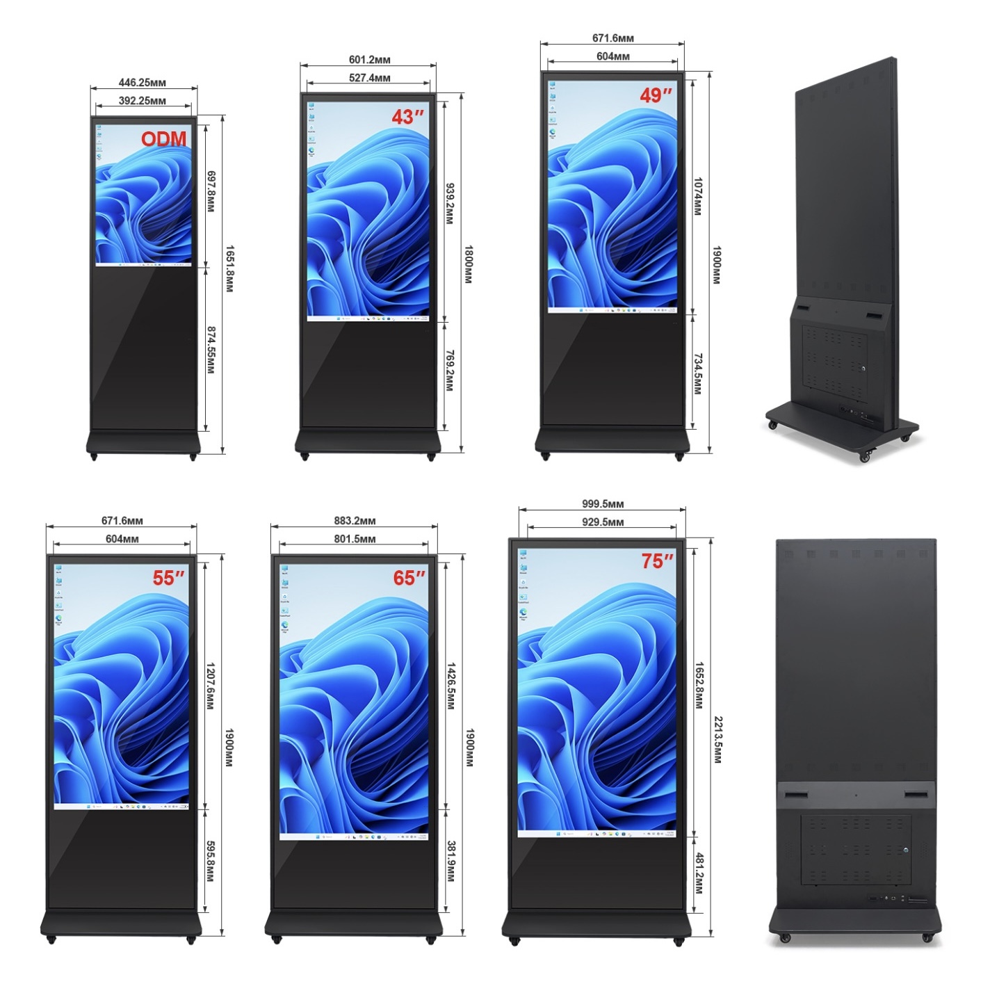 | Size | 43", 49", 55", 65", 75" |