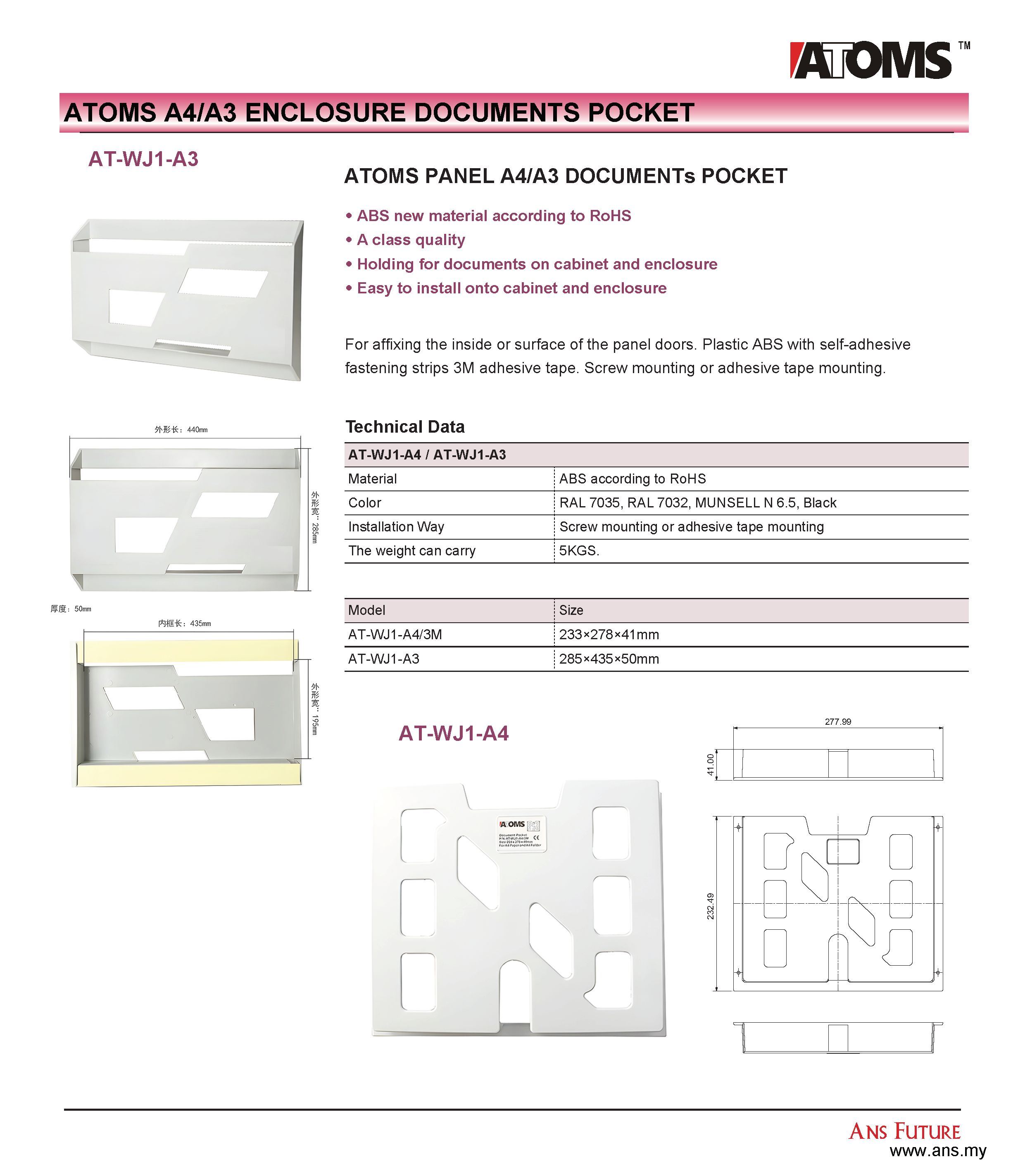 ATOMS A3 Enclosure Document Pocket (WJ1-A3)