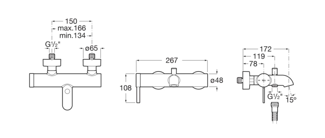 Ona Wall-mounted bath-shower mixer with automatic diverter