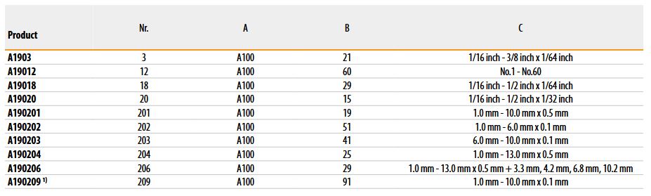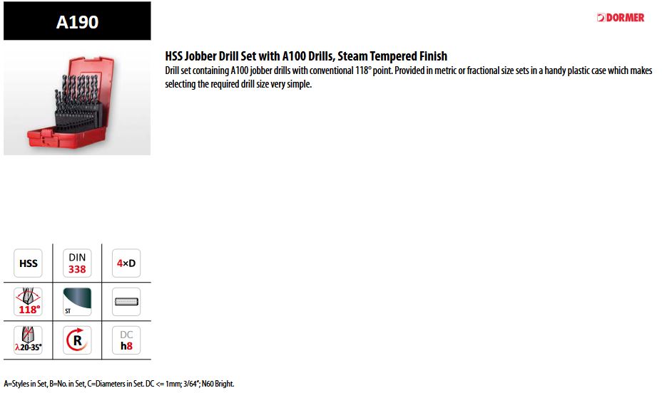 A190 HSS Jobber Drill Set with A100 Drills