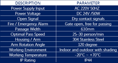 During power failure, the FAT FH601 Full Height Turnstile can be configured