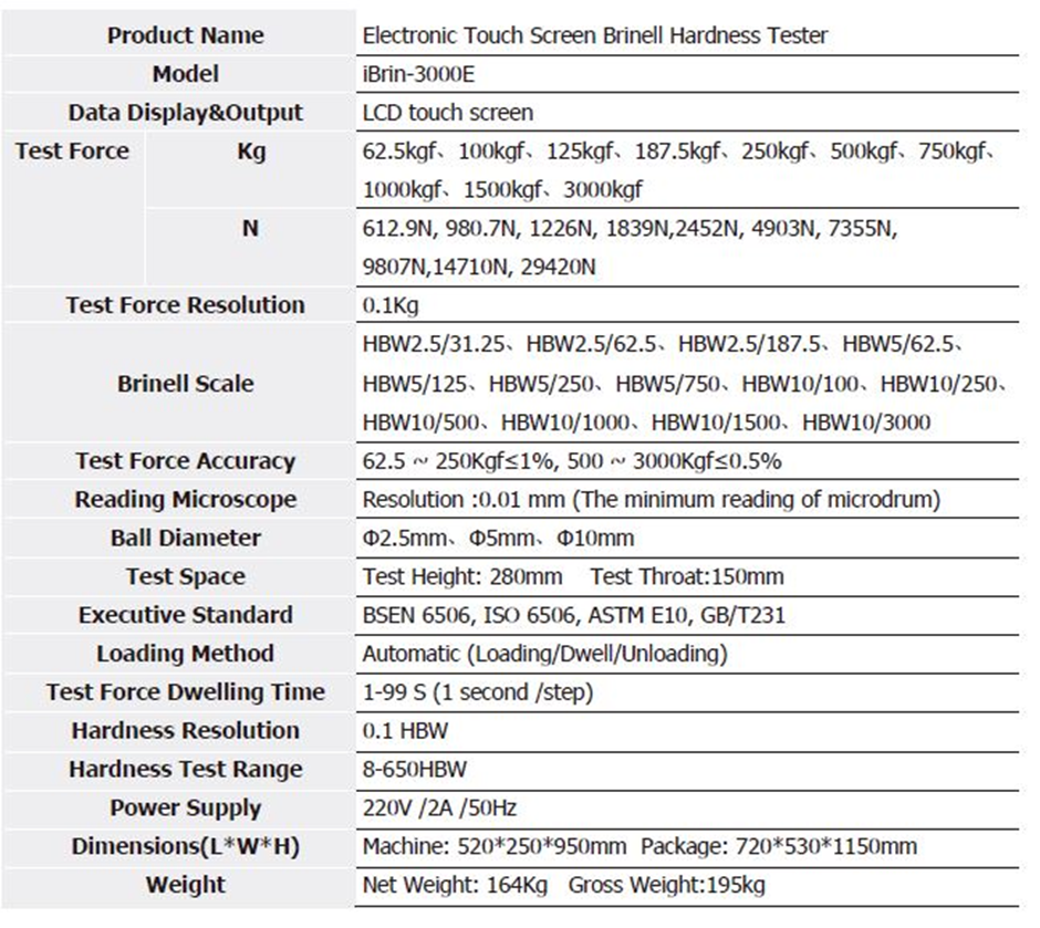 ● iBrin-3000E complies with standards such as GB/T231.2 - 2002