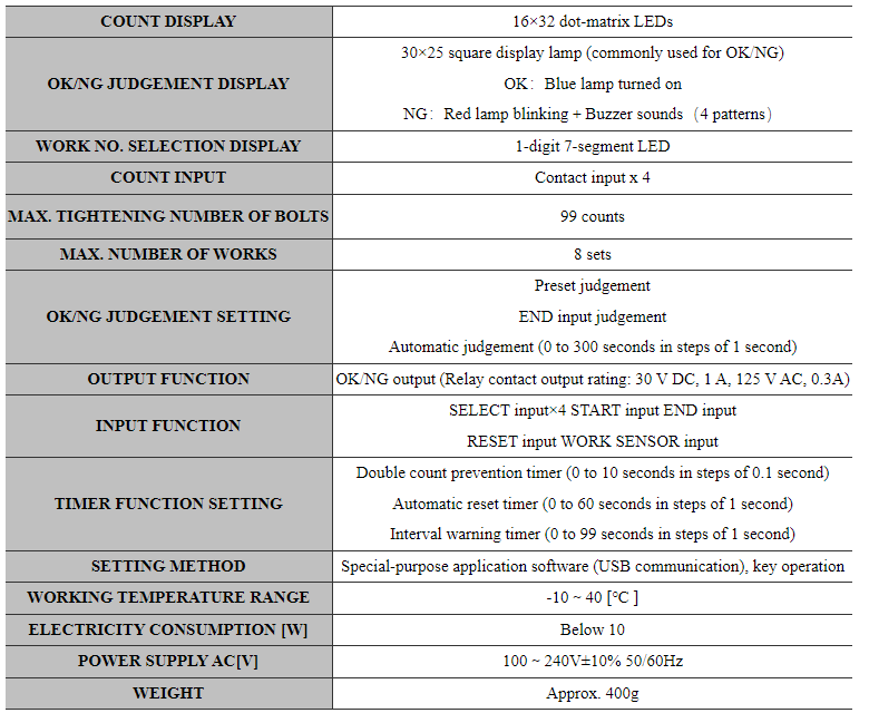 Bolt counting can be set 0-99 pcs for each torque wrench, and count down upon receiving a signal.