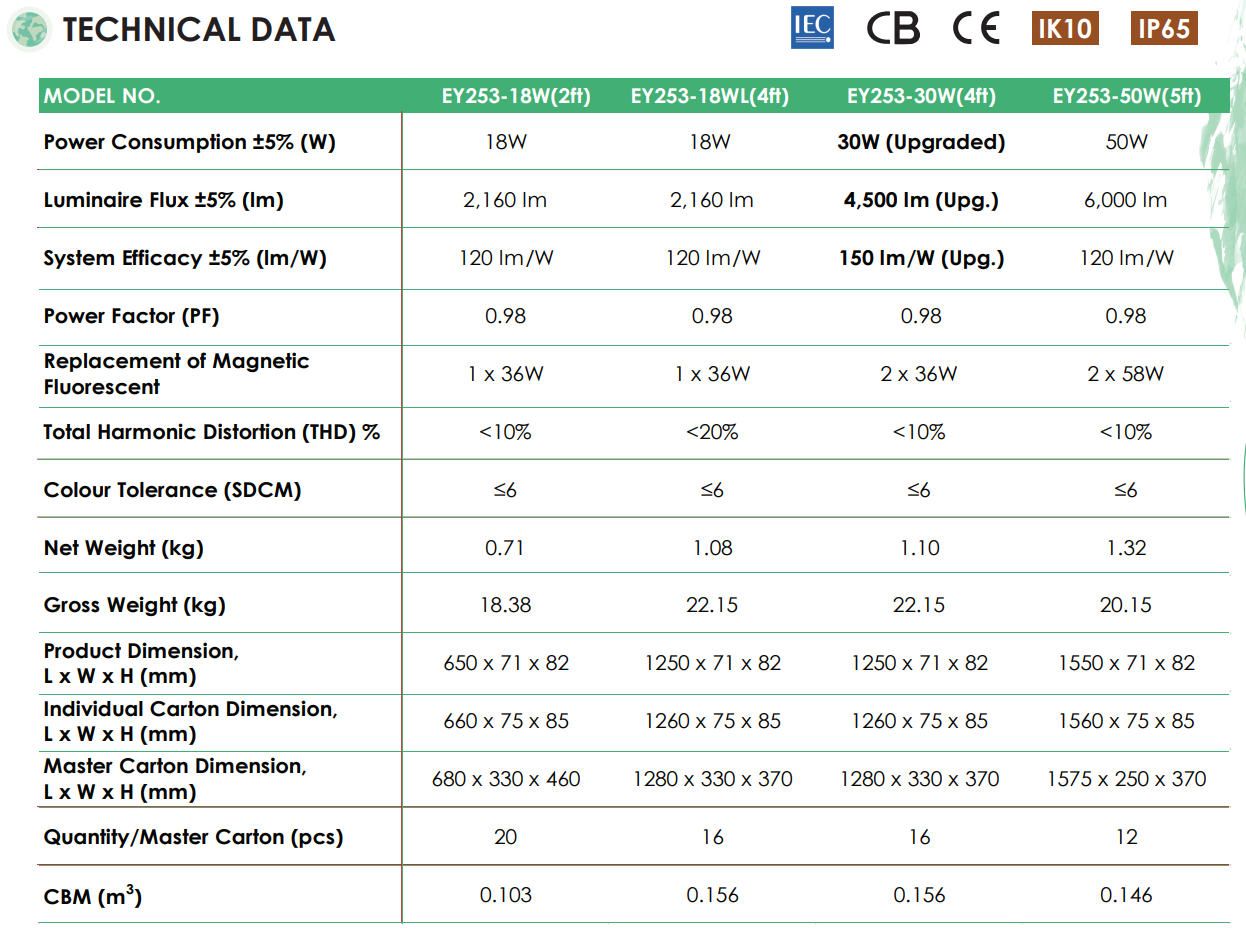 Optional Features / Accessories: - Series Connection Double End Plug-in Version-EY253-36W-SC - Motion sensor - DALI / 1-10V Dimming Control