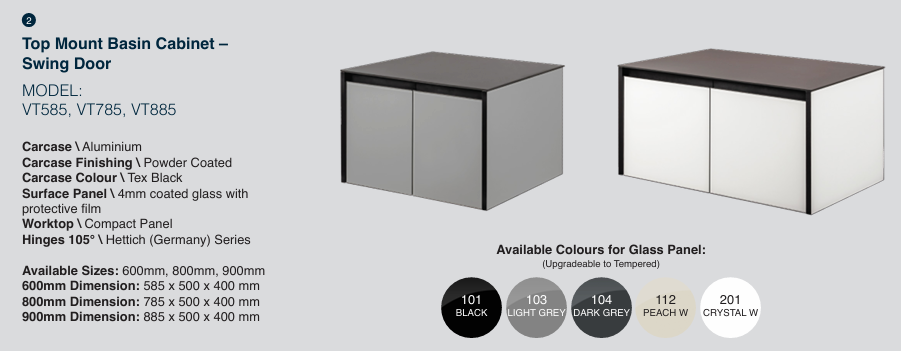 The Top Mount Basin Cabinet features a basin placed on top of the cabinet, creating a more visible and stylish appearance. It is also easier to install and replace compared to undermount designs.