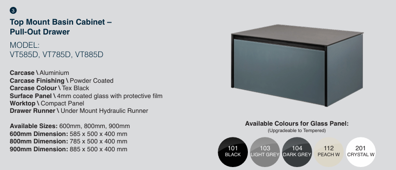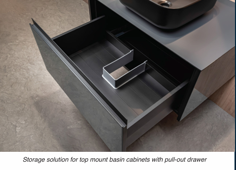The Top Mount Basin Cabinet with Drawer is designed for better storage organisation. The drawer system allows easy access to daily items, making it more convenient than standard cabinets.