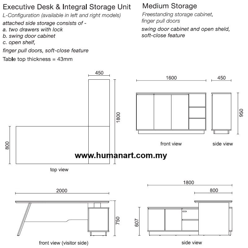 Made with high-quality materials and finished in a sophisticated Cafe Latte and Dark Grey color scheme, this set exudes professionalism and elegance. The matching Rabico Cabinet Set features a low swing door cabinet that measures 1600W x 450D x 950H mm, providing additional storage and enhancing the overall look of your office.
