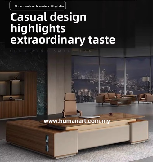 Penerangan : Tingkatkan pejabat eksekutif anda dengan Meja Pengarah CAVARO bersaiz ekstra besar (2400W×900D mm). Kemasan Mocha Walnut + Beige premium, kabinet sebelah tunggal bersepadu (1890L×550D mm) untuk kepimpinan yang bebas dari kekusutan. Tahan lama, bergaya, dan sempurna untuk CEO dan Pengarah di KL, PJ, & Selangor. Beli dari Human Art untuk kualiti & nilai.