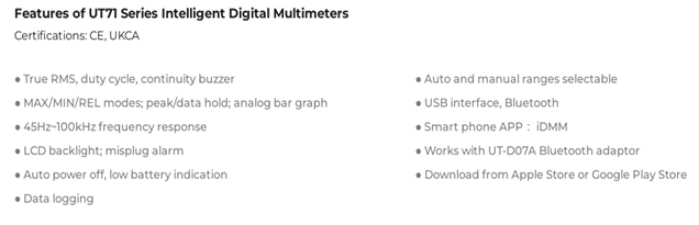 UNI-T UT71 Series Intelligent Digital Multimeters