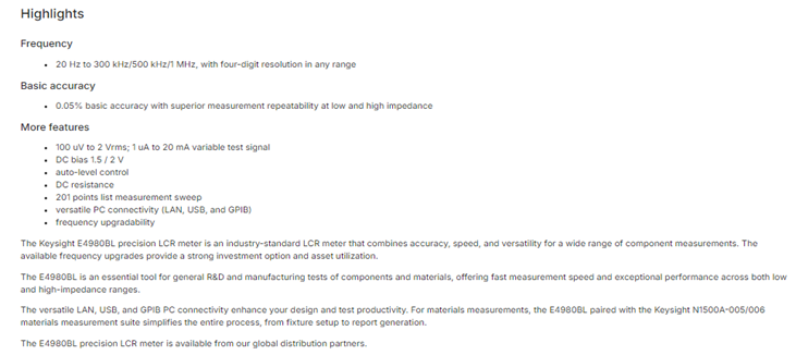 KEYSIGHT Benchtop LCR Meters