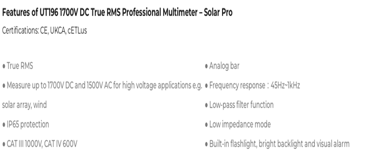 UNI-T UT196 1700V DC True RMS Professional Multimeter – Solar Pro