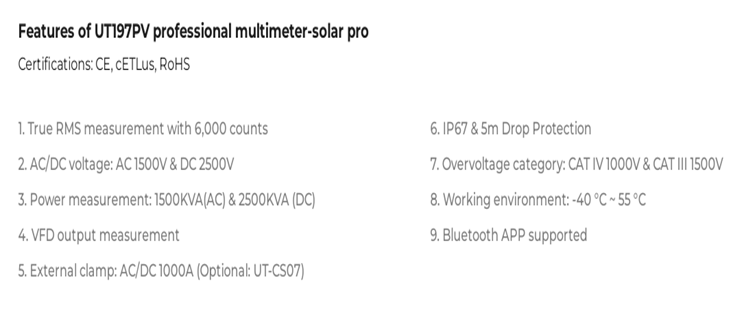 UNI-T UT197PV professional multimeter-solar pro