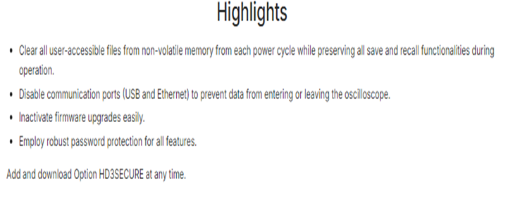 KEYSIGHT HD3SECURE Enhanced Security Option for HD3 Oscilloscopes