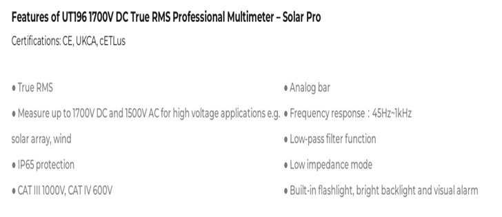 UNI-T UT196 1700V DC True RMS Professional Multimeter – Solar Pro