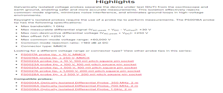 KEYSIGHT PS0018A Isolated Probe Tip, ± 30V, MMCX